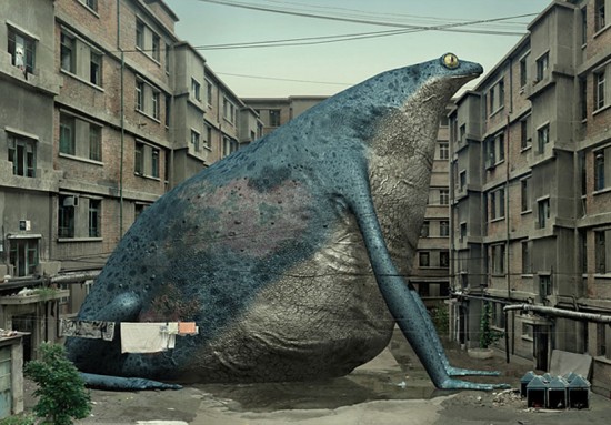 The perpetual conflict between man and nature is illustrated by young Chinese photographer Liu Di in a series of photos depicting oversized animals at odds with their settings. The rapid changes in urban development play a major role, of course, in this conflict. However, despite the seriousness of the situation, Liu Di chooses to highlight it by using humour and playing with scale. And he was the recipient of the 2010 Lacoste Élysee Prize because of it.